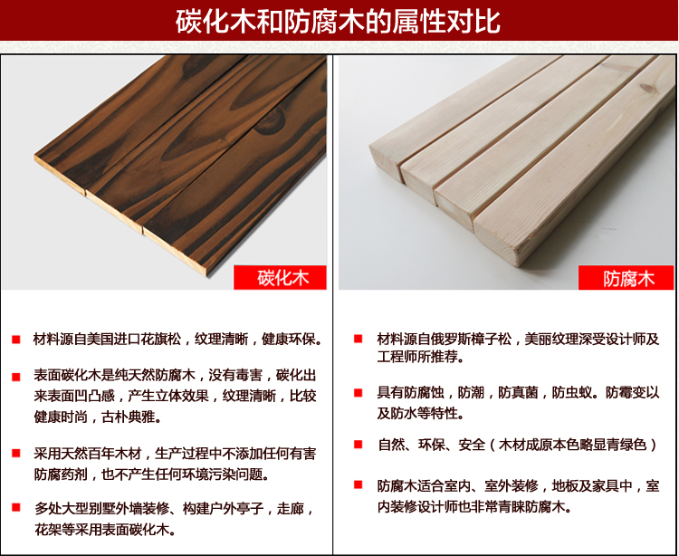 產(chǎn)品用途:本廠專業(yè)生產(chǎn)加工戶外園藝景觀防腐木,炭化木,桑拿板等。主要適用別墅、室外園藝園林、戶外休閑場(chǎng)所、室內(nèi)外裝飾、碼頭橋梁戶外地板等領(lǐng)域。