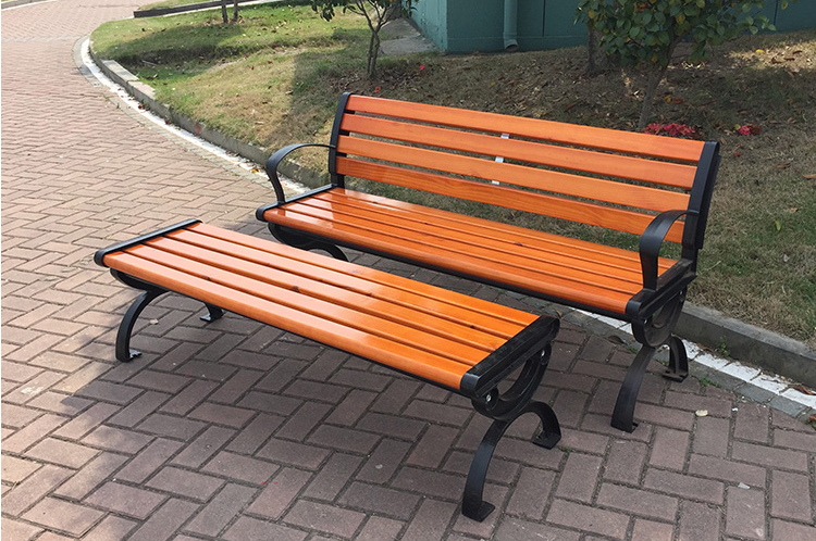 福園 戶外園林休閑椅公園椅子鑄鐵防腐木室外長椅凳子實木靠背座椅