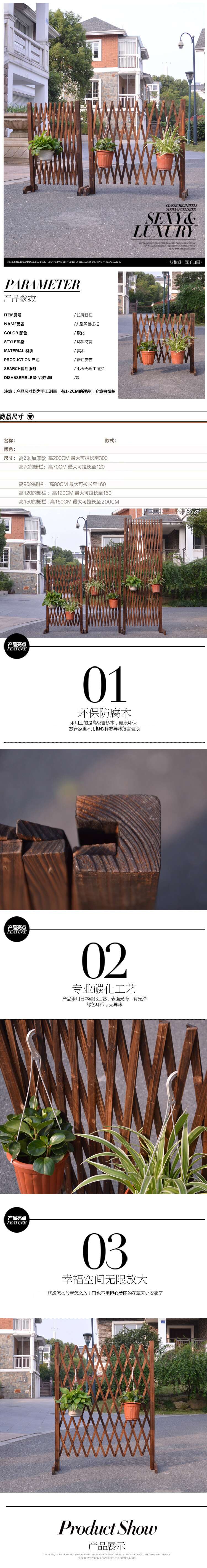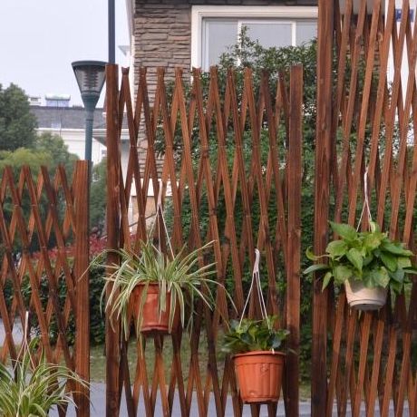 嵩景 防腐咖啡色木隔斷柵欄圍欄爬藤架拉網庭院木籬笆伸縮圍欄裝飾