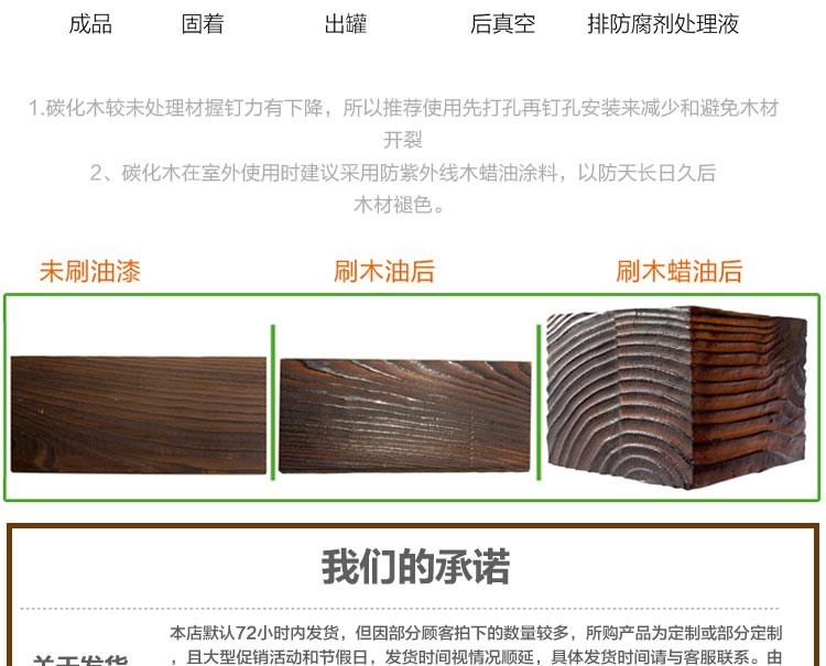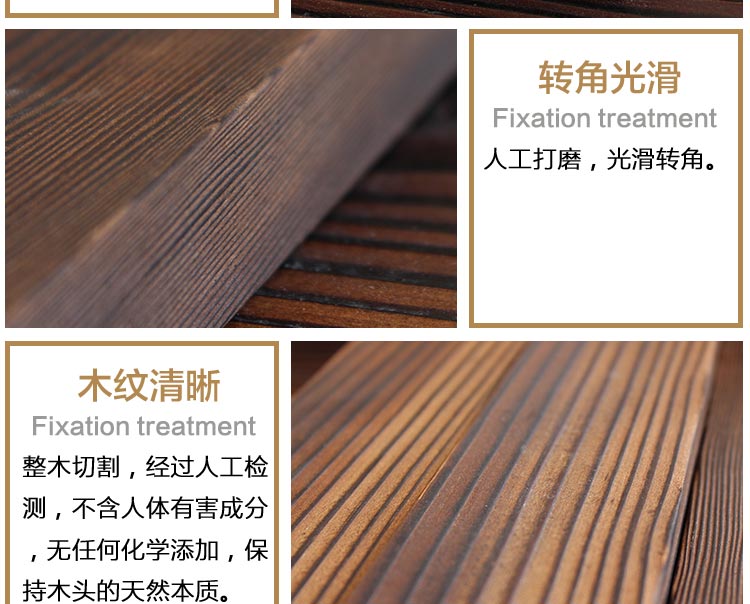 1.進口美國花旗松 精選原材 2.嚴苛的碳化防腐工藝 AAA級環保水性清漆 確保產品健康 環保 穩定 持久 3.用途廣泛 適用于室內外裝飾 打造木屋涼亭 葡萄架 桌椅花箱 柵欄圍欄