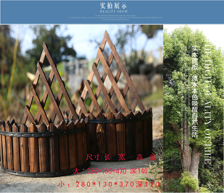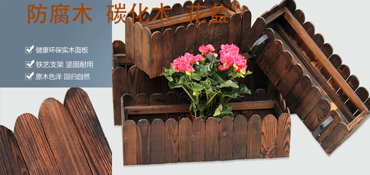 佳隆 尖頭柵欄花盆碳化防腐木花箱壁掛吊蘭 種菜盆實木花架 吊籃花盆槽
