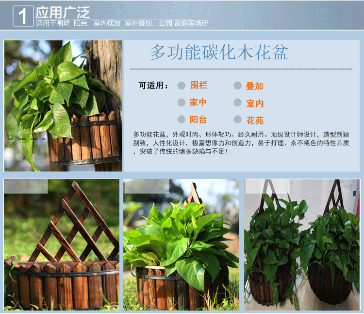 花盆美觀大方可掛可擺擁有著良好的防腐效果,防腐爛 可以隨意掛在任何地方如墻壁 臥室 客廳 庭院 只要你感覺好看 可以隨意掛