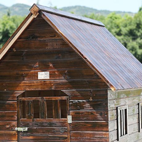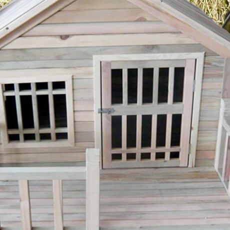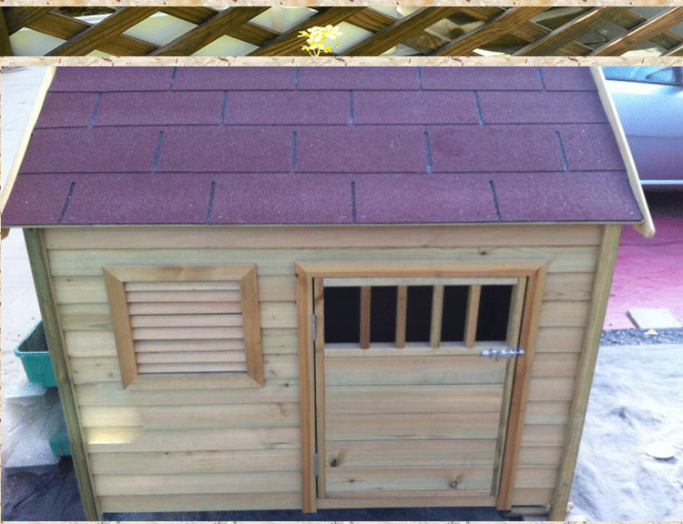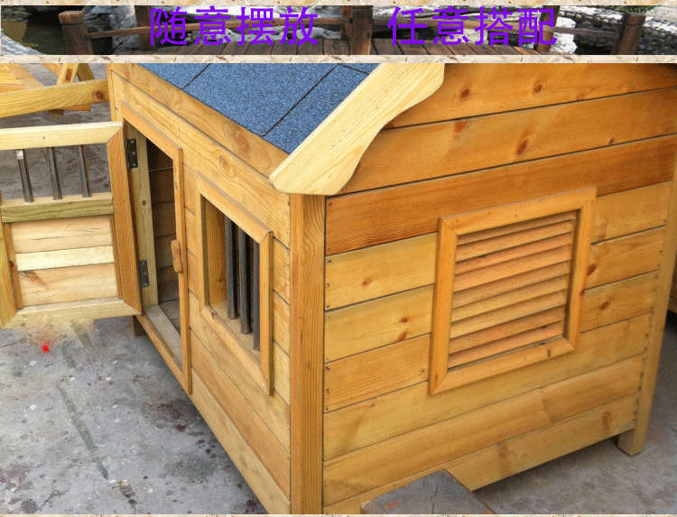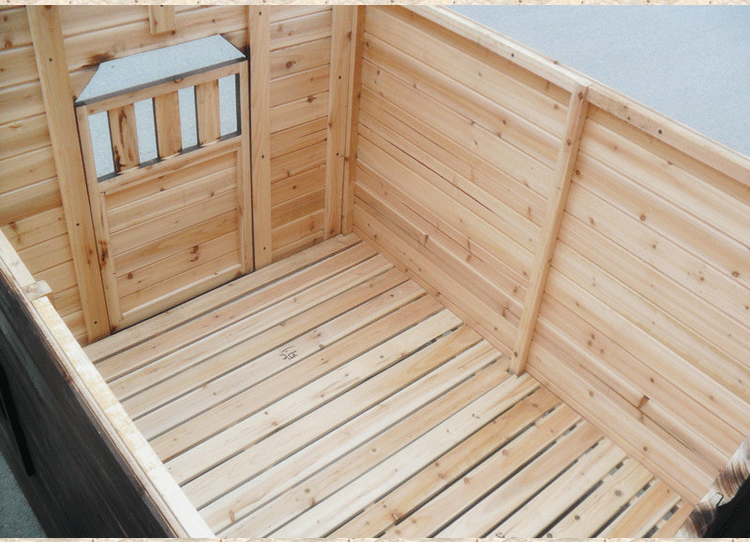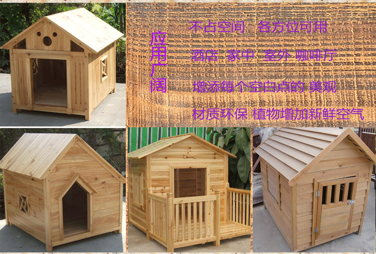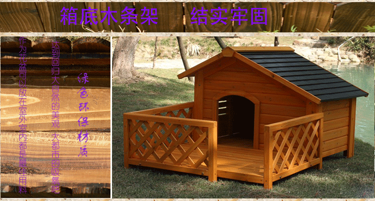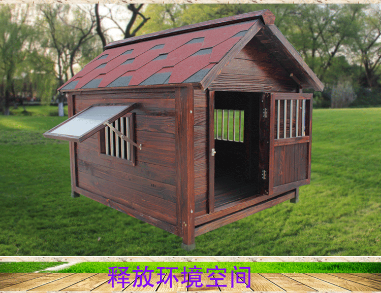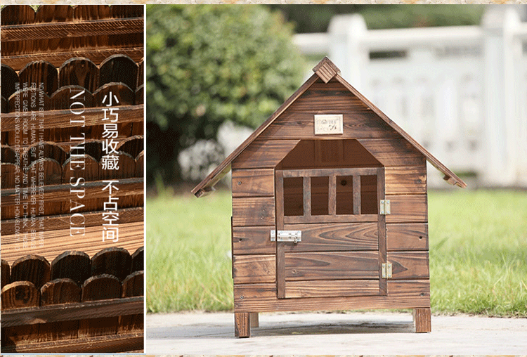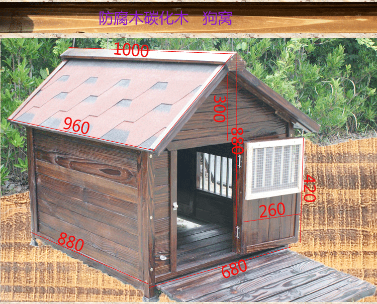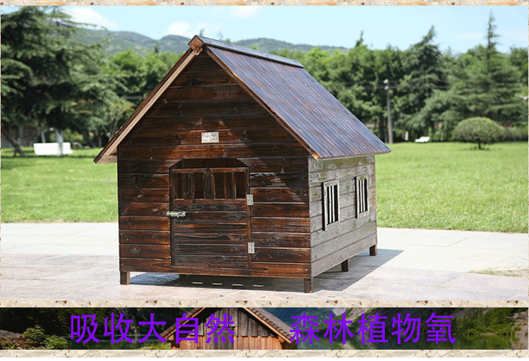 狗屋表面均經過高溫碳化處理后刷三遍環保清漆,防腐無害,讓您的寵物溫馨舒適!