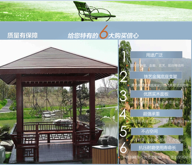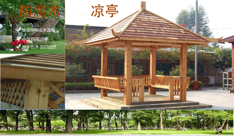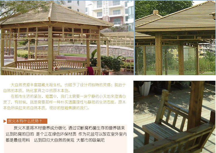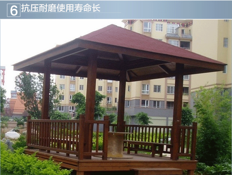 材質(zhì)經(jīng)過防腐腐朽,表面經(jīng)過防腐碳化處理,可以在戶外使用