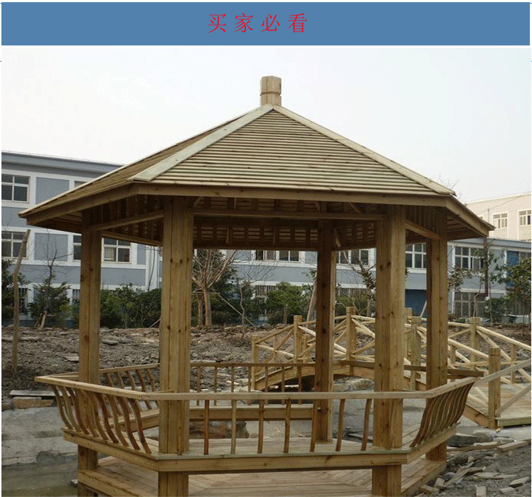 永之盛 防腐木戶外涼亭碳化實木六角涼亭別墅涼亭園藝涼亭公園避風(fēng)雨涼亭 3925*3000*2900