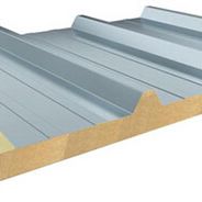 ▲剛度好:聚氨酯雙側封巖棉芯材與兩層鋼板粘接成一個整體,共同工作,再加上屋面板上表面起波壓型,其整體剛度遠勝于壓型板夾巖棉(玻璃絲棉)的現場復合板材。夾芯板通過連接件與檁條固定后,大大提高了屋面的整體剛度,加強了屋面整體工作性能。選用巖棉夾芯板,可采用較大檁距,故可節省檁條用量1/3~2/3。