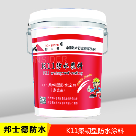 ? ? ?K11柔韌型防水涂料(雙組份),由高分子聚合物改性而成的水泥基防水材料。粉料與添加劑混合后發生反應,涂刷在基面上形成一層堅韌的防水膜,能抵御建筑物各種原因產生的微裂縫,適應建筑結構輕微的震動以及不大于2mm的位移。該防水層干固后不會產生收縮,能阻止底材硅酸鹽的滲透,抑制霉菌的生長和防止鹽份對飾面或混凝土造成污染和侵蝕。
