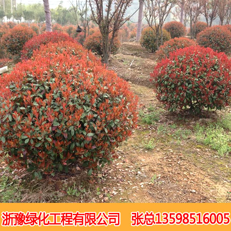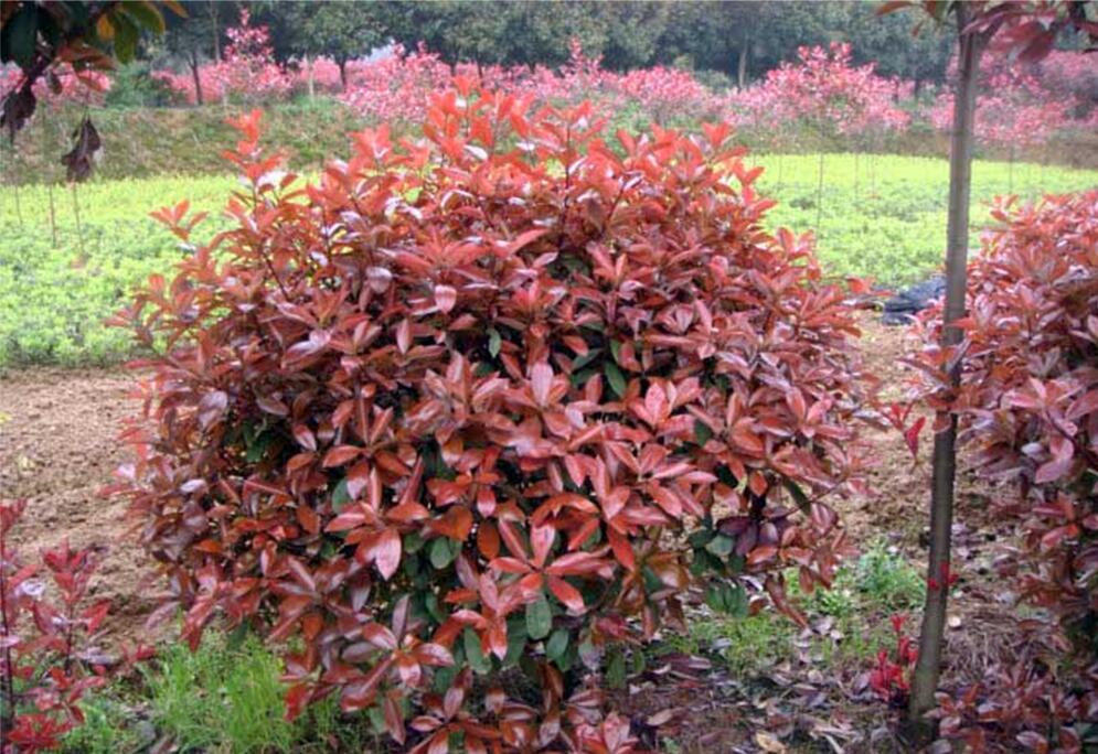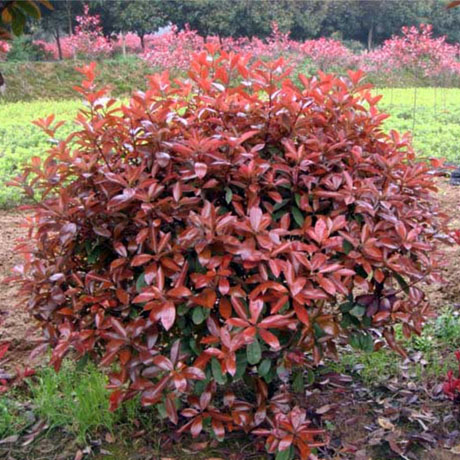 紅葉石楠生長(zhǎng)速度快,且萌芽性強(qiáng),耐修剪,可根據(jù)園林造景需要修剪培育各種造型。一至二年生的紅葉石楠可修剪成矮球或矮籬;三年生以上的中大苗可進(jìn)行高桿造型,孤植或群植成大型綠籬或幕墻,在居住區(qū),廠區(qū)綠地、街道或公路隔離帶中應(yīng)用,是全球綠化樹種中最為時(shí)尚的紅葉系列樹種。