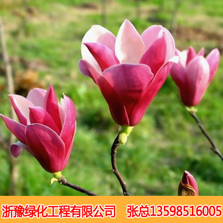 紫玉蘭是木蘭科紫玉蘭屬落葉灌木,地栽高3至5米,盆栽高1至1.5米,常叢生,葉倒卵形或橢圓形,花單生于枝頂,鐘狀,花被9片,3片排成一輪,紫色或紫紅色,春季先花后葉或花葉同放。紫玉蘭喜光,不耐陰;較耐寒,喜肥沃、濕潤、排水良好的土壤,忌黏質土壤,不耐鹽堿;肉質根,忌水濕;根系發達,萌蘗力強。