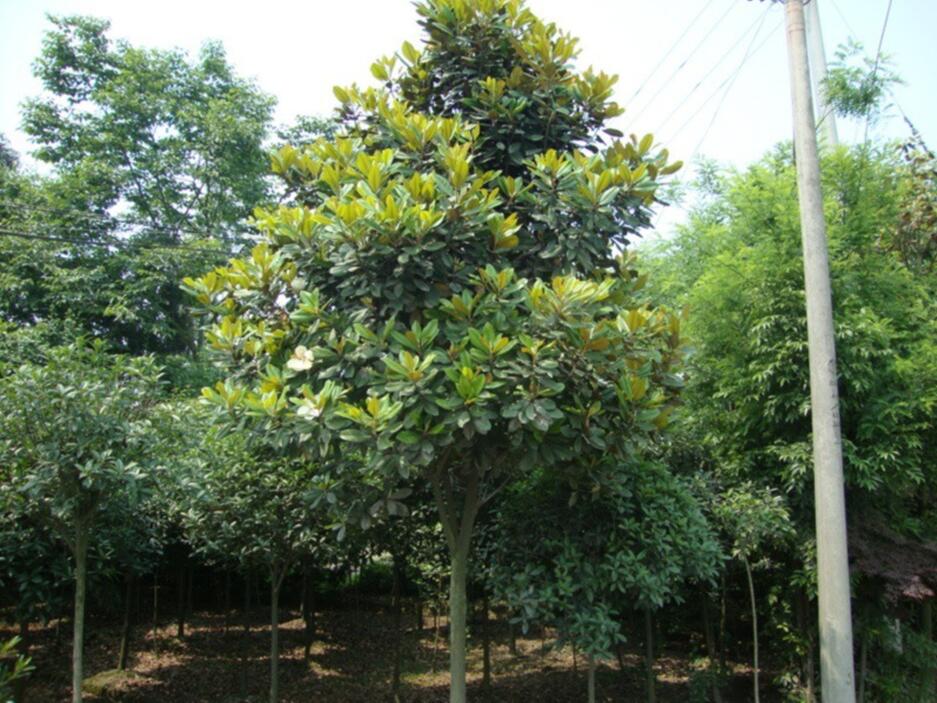 廣玉蘭樹姿優(yōu)雅,四季常青,病蟲害少,因而是優(yōu)良的行道樹種,不僅可以在夏日為行人提供必要的庇蔭,還能很好地美化街景。但栽種時應(yīng)盡量選擇較大一些的苗木,干徑3~6 cm,高度2. 8 m 左右較為適宜。過小,則易遭破壞;過大,則移栽成活率低。道路綠化時,廣玉蘭與色葉樹種配植,能產(chǎn)生顯著的色相對比,從而使街景的色彩更顯鮮艷和豐富。在綠化帶應(yīng)用中,將廣玉蘭與紅葉李間植,并配以桂花、海桐球等,不僅在空間上有層次感,而且色相上又有很大的變化,打破了序列空間的單調(diào),產(chǎn)生一種和諧的韻律感,取得了很好的效果 。