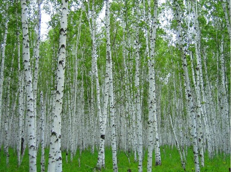 ? ? ? ?白樺喜歡陽光,生命力強,在大火燒毀的森林以后,首先生長出來的經常是白樺,常形成大片的白樺林,是形成天然林的主要樹種之一。木材可供一般建筑及制作器、具之用,樹皮可提樺油,白樺樹孤植、叢植于庭園、公園的草坪、池畔、湖濱或列植于道旁均頗美觀。在中國的北方,在草原上,在森林里,在山野路旁,都很容易找到成片成片茂密的白樺林。白樺樹是俄羅斯的國樹,是這個國家的民族精神的象征。