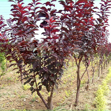 紅葉李,薔薇科李屬落葉小喬木,高可達(dá)8米,原產(chǎn)中國華北,及其以南地區(qū)廣為種植。灌木或小喬木,高可達(dá)8米;小枝暗紅色,無毛;冬芽卵圓形,先端急尖,有數(shù)枚覆瓦狀排列鱗片,紫紅色,有時(shí)鱗 片邊緣有稀疏緣毛。葉常年紫紅色,著名觀葉樹種,孤植群植皆宜,能襯托背景。尤其是紫色發(fā)亮的葉子,在綠葉叢中,像一株株永不敗的花朵,在青山綠水中形成一道靚麗的風(fēng)景線。