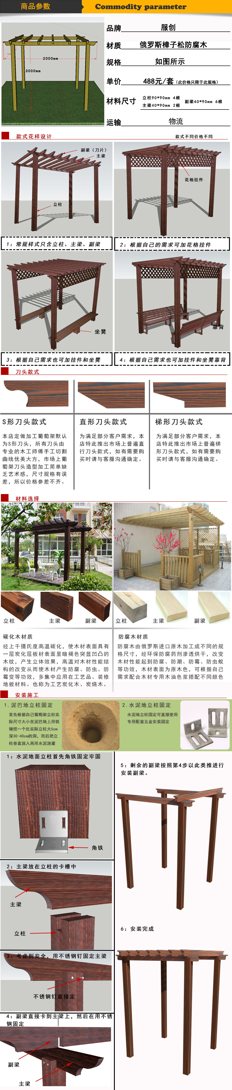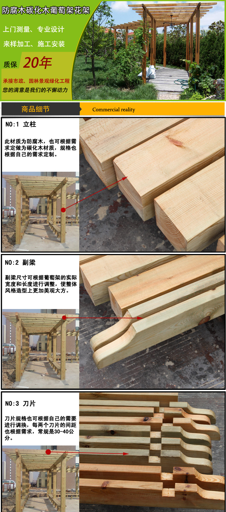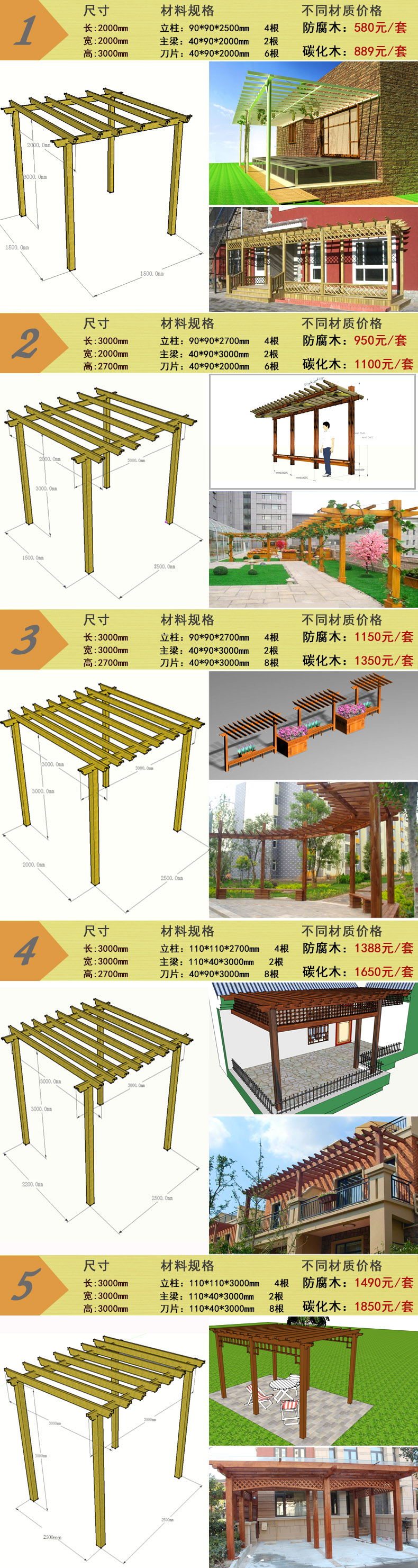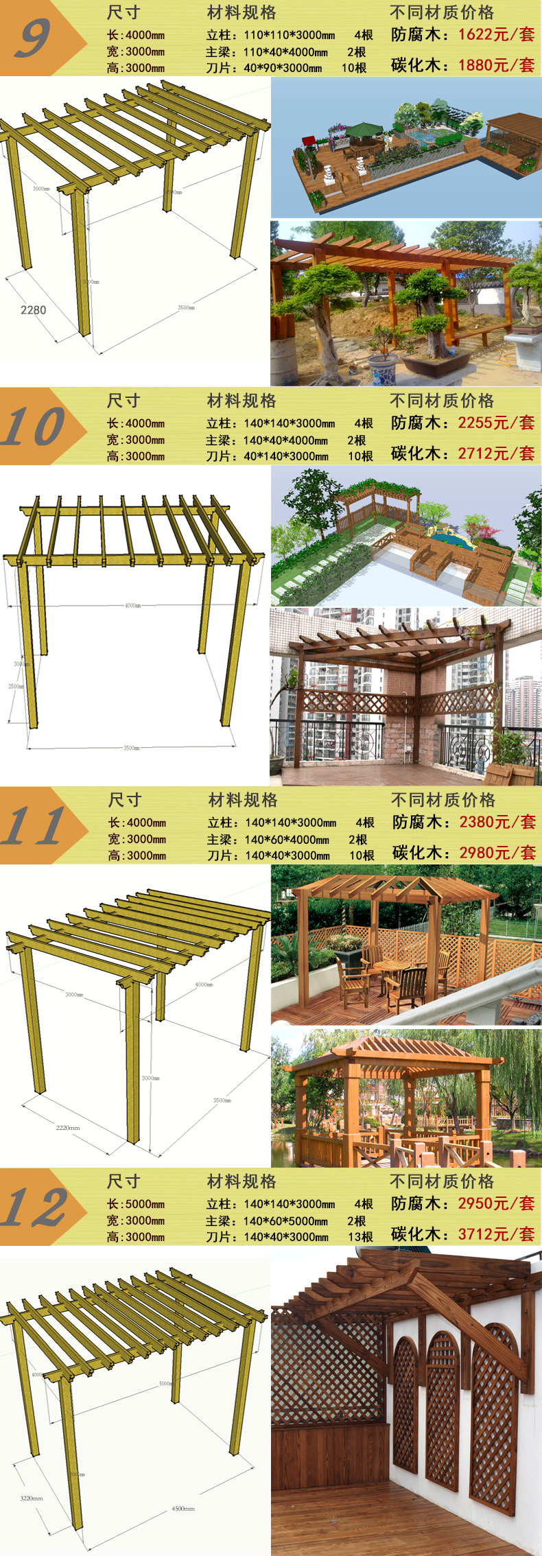 恒泰 防腐木葡萄架 戶外碳化木爬藤花廊架庭院涼亭陽光房木屋定制 3925*3000*2900