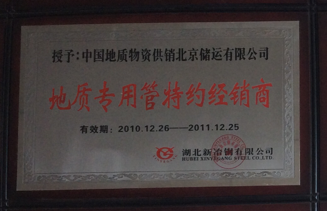 中國地質(zhì)物資供銷北京儲運有限公司是國有大型物資流通企業(yè),是寶鋼、包鋼、鞍鋼、冶鋼、天津鋼管公司地質(zhì)管專項代理。鄭州分公司是總公司在河南設立的唯一銷售機構,地質(zhì)專用管材是本公司的特色經(jīng)營,常年保持庫存1萬噸左右,年銷量售額過億元。所售產(chǎn)品均執(zhí)行國家標準,適用于工程、煤礦、紡織、電力、鍋爐、機械、軍工等各個領域。公司以良好的信譽、優(yōu)質(zhì)的產(chǎn)品、雄厚的實力、低廉的價格享譽全國30多個省、市、自治區(qū),產(chǎn)品深得用戶依賴。始終秉承“誠實做人,誠信做事”的方針,遵循“以市場為導向,以客戶為依托,以質(zhì)量求生存,以雙贏為目的”的經(jīng)營宗旨。遵循“以科技創(chuàng)新求發(fā)展,依靠質(zhì)量求生存”的原則,用最好的質(zhì)量,最好的服務,最全的規(guī)格,最優(yōu)的價格,與新老客戶通力合作,攜手并進,開創(chuàng)新的未來,再創(chuàng)新的輝煌。