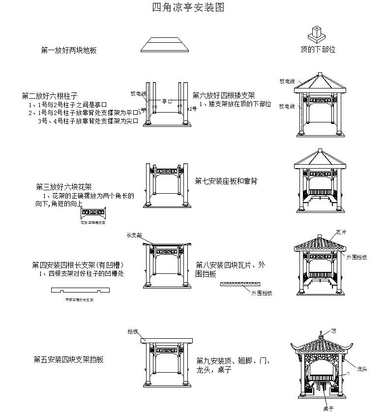 鑫源森 亭子戶外涼亭 實木仿古涼亭四角亭子 庭院防腐木亭子龍鳳閣休閑亭 5000*5000*2440