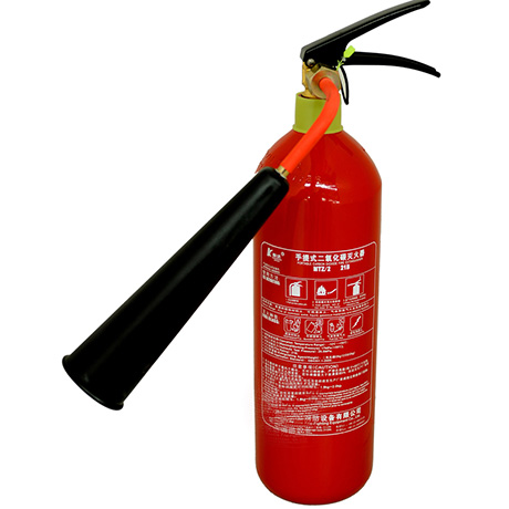 二氧化碳滅火劑是一種具有一百多年歷史的滅火劑,價格低廉,獲取、制備容易,其主要依靠窒息作用和部分冷卻作用滅火。二氧化碳具有較高的密度,約為空氣的1.5倍。在常壓下,液態的二氧化碳會立即汽化,一般1kg的液態二氧化碳可產生約0.5立方米的氣體。因而,滅火時,二氧化碳氣體可以排除空氣而包圍在燃燒物體的表面或分布于較密閉的空間中,降低可燃物周圍或防護空間內的氧濃度,產生窒息作用而滅火。另外,二氧化碳從儲存容器中噴出時,會由液體迅速汽化成氣體,而從周圍吸收部分熱量,起到冷卻的作用。