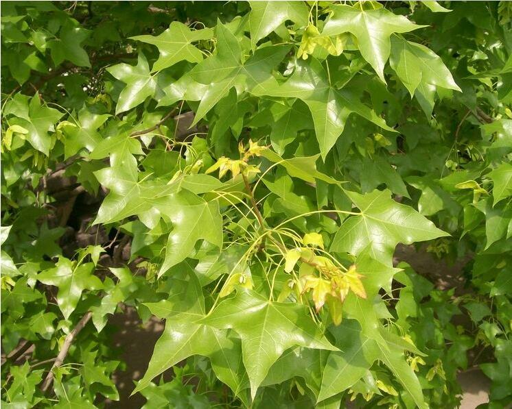 五角楓屬,落葉喬木,高達20m,葉掌狀5裂,裂片較寬,先端尾狀銳尖,裂片不再分為3裂,葉基部常心形,最下部2裂片不向下開展,但有時可再裂出2小裂片而成7裂。果翅較長,為果核之1.5~2倍。溫帶樹種,弱度喜光,稍耐蔭,喜溫涼濕潤氣候,對土壤要求不嚴,在中性、酸性及石灰性土上均能生長,但以土層深厚、肥沃及濕潤之地生長最好,黃黏土上生長較差。生長速度中等,深根性,抗風力強