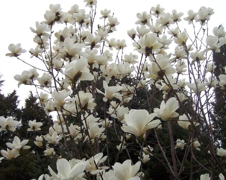 又名木蘭、白玉蘭、玉蘭等。木蘭科落葉喬木,樹高一般2—5米或高可達15米。花白色,大型、芳香,先葉開放,花期10天左右。中國著名的花木,北方早春重要的觀花樹木。上海市市花。中國有2500年左右的栽培歷史,為庭園中名貴的觀賞樹。分布于中國中部及西南地區,現世界各地均已引種栽培。通常用播種、嫁接法繁殖。喜溫暖、向陽、濕潤而排水良好的地方,要求土壤肥沃、不積水。有較強的耐寒能力,在-20℃的條件下可安全越冬。在北京小環境較好的地方生長良好。移栽應在萌動前十余日,或花后展葉前進行。播種苗,一般要5年左右方能開花。北方常見的還有二喬玉蘭,花瓣外面淡紫色里面白色。