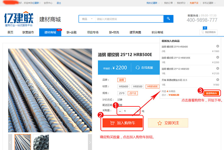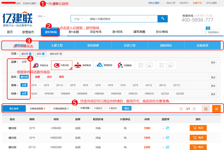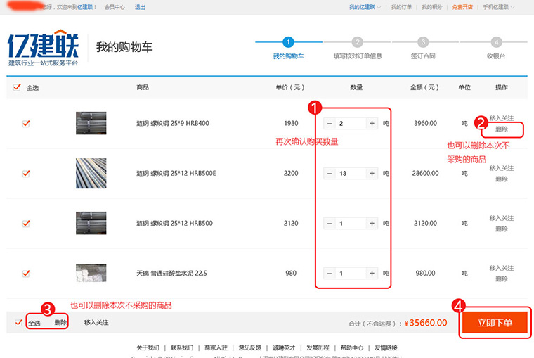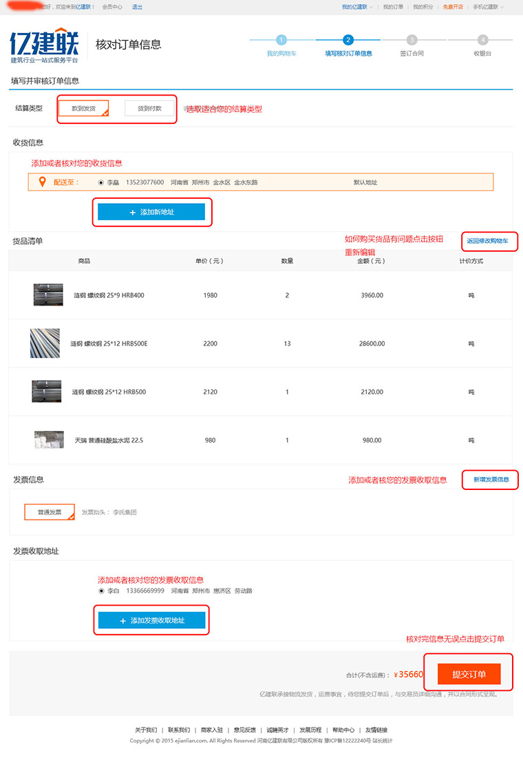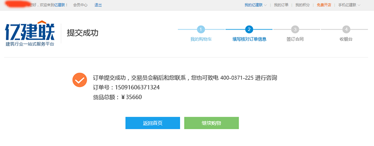 5)訂單提交成功,億建聯專屬交易員會及時與您聯系,洽談合同合同事宜和支付結算方式。